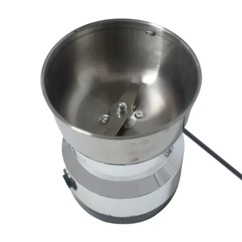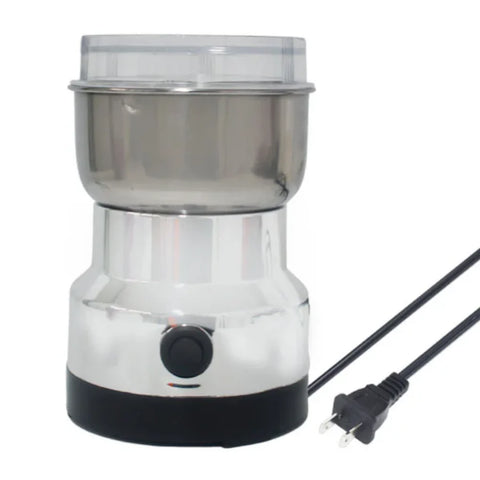 Molino Eléctrico para Café 200 W de Potencia. Botón de control de interruptor, con una capacidad de molienda de 50 gramos aproximadamente. La tapa de plástico permite que los sólidos no salgan del recipiente que es de acero inoxidable. Sirve para moler café, especias, entre otros. Sus cuchillas son de metal y es fácil de usar.
