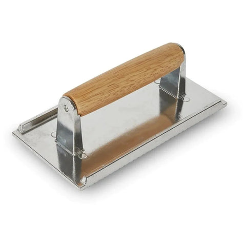 ¿Quieres acelerar el proceso de cocción de filetes, hamburguesas, tocino, y otras carne? Utiliza este peso de filete para presionar ligeramente los filetes y otras carnes a la parrilla mientras que también utiliza el calor almacenado en el peso mismo para cocinar el otro lado. Este peso de carne de hierro fundido viene con un mango de madera. Se puede usar en parrillas para acelerar la cocción de carnes presionando la comida plana contra la parrilla caliente, o para cocinar tocino sin rizar. Los utensilios con mangos de madera no son aptos para lavavajillas; la exposición al agua caliente puede causar que la madera se deforme o se astille. Estos artículos deben lavarse a mano y secarse a fondo. Para obtener resultados óptimos, use un acondicionador de madera periódicamente para prolongar la vida útil de la madera.